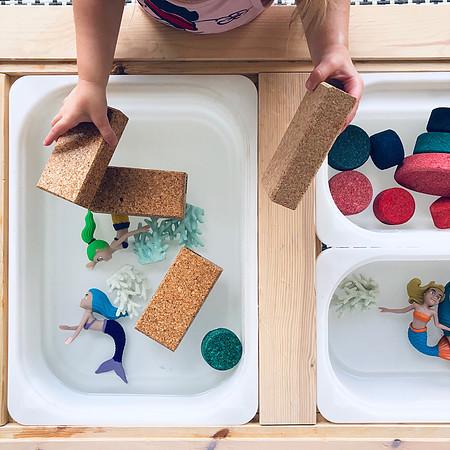 Korxx blocks are 100% sustainable, contain no poisons, and free of any pollutants. They have been tested and proven safe for children under the age of 3 in the USA, EU, and Japan. Let's just say, Korxx natural cork blocks are some of our favorite blocks, and let me tell you why... they float!!