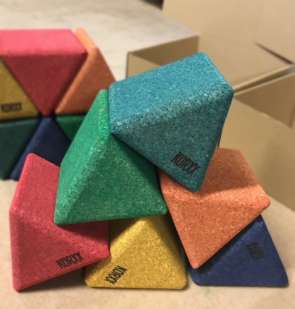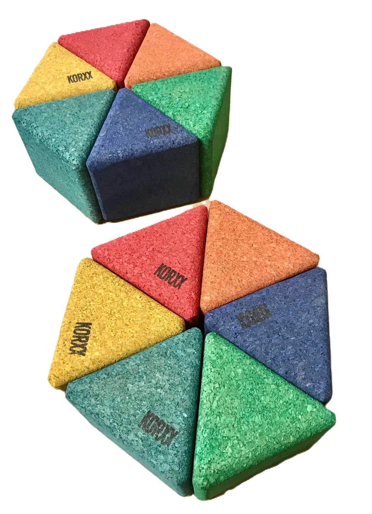 Alle KORXX Kork Bausteine können miteinander kombiniert werden; die Steine der Brickle-Serie (Mini-Variante für den mobilen Einsatz) sowie die Big Blocks (XL-Bauklötze) besitzen jedoch eine andere Größe.