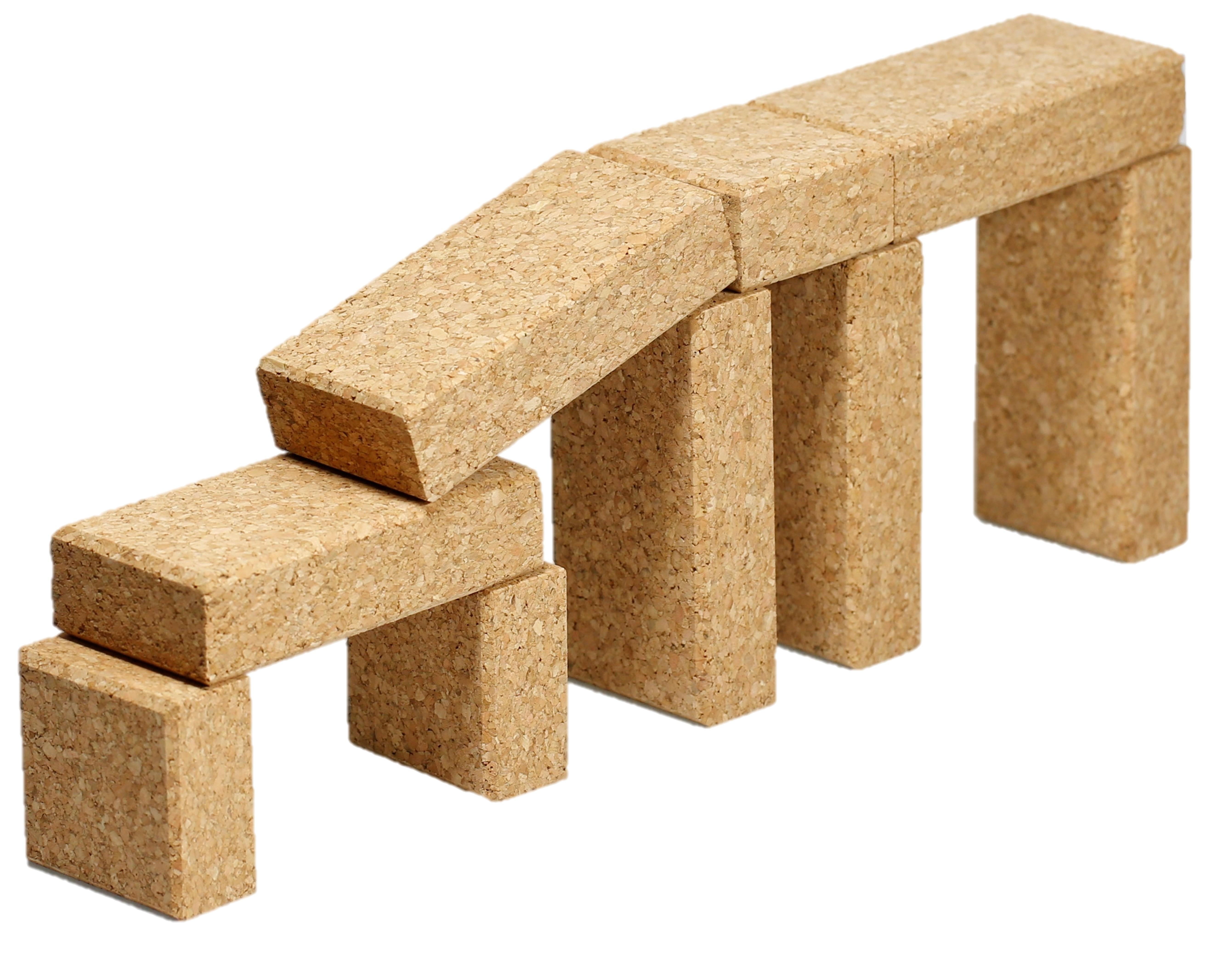 Leicht, weich, leise und stabil: Das sind die minimalistischen Bauklötze von KORXX. Sie bestehen zu 100% aus gepresstem Korkgranulat, das aus nachwachsenden Hölzern in einer nachhaltigen Waldwirtschaft produziert wird. Durch die besondere Oberfläche haften die Klötze hervorragend aneinander und ermöglichen so stabile Konstruktionen ohne Verrutschen. Das freie Kreieren von Strukturen fördert Kreativität und Vorstellungsvermögen und schafft Selbstvertrauen durch positive Erfolgserlebnisse. Die KORXX-Bauklötze sind anti-allergen und bergen aufgrund ihres Gewichtes ein geringeres Verletzungsrisiko, so dass bereits kleinste Kinder ab dem zweiten Lebensjahr mit ihnen spielen können.
