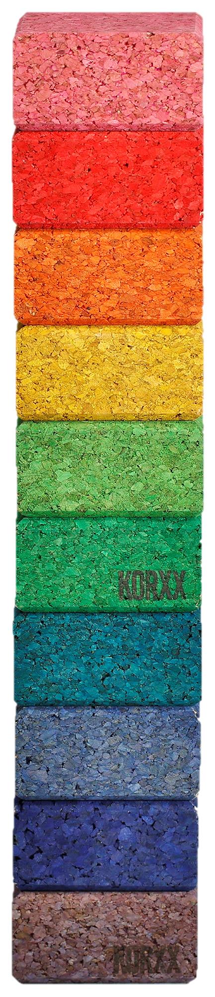 Alle KORXX-Bauklötze können miteinander kombiniert werden; die Steine der Brickle-Serie (Mini-Variante für den mobilen Einsatz) sowie die Big Blocks (XL-Bauklötze) besitzen jedoch eine andere Größe.